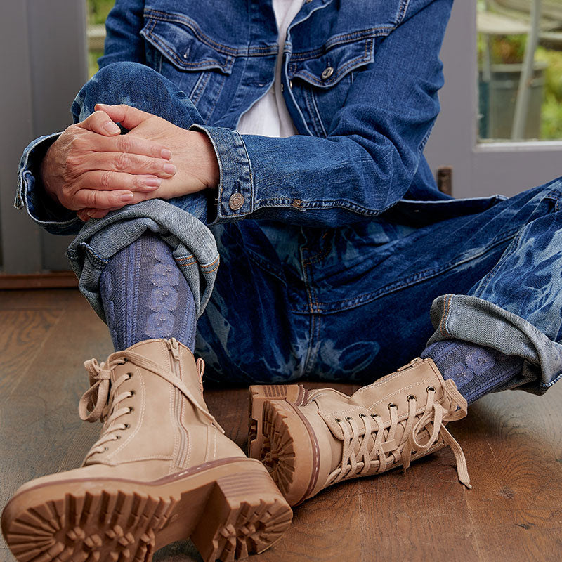 Sustainable Denim Blue Socks Romancing Your Jeans. An Ethical Love Match with GOTS Certified Organic Cotton.